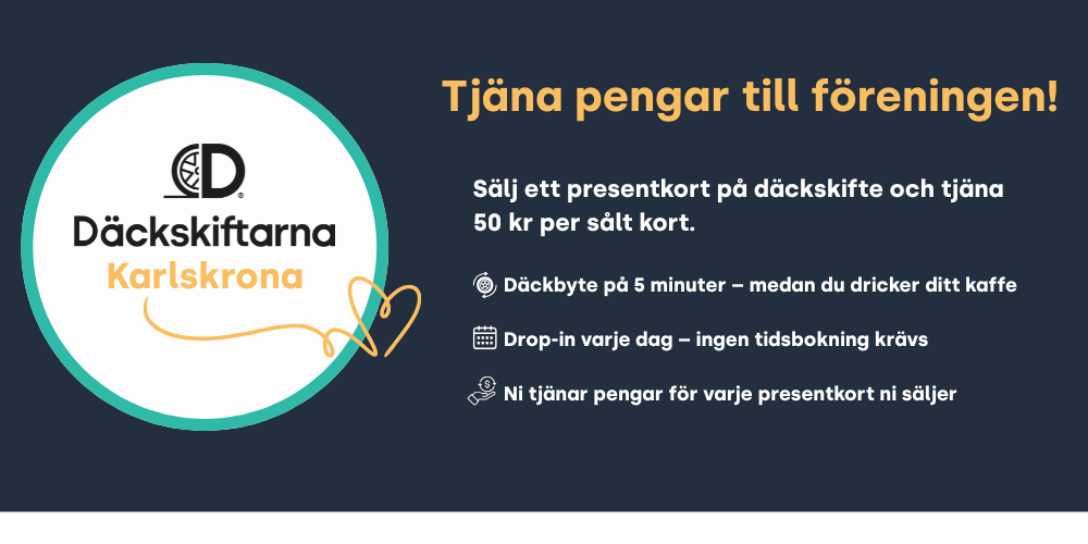 Är din förening baserad i Karlskrona? Nu kan ni tjäna pengar till laget, klubben eller verksamheten – genom att sälja presentkort på däckskifte.