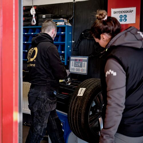 Om du låter oss genomföra en balansering behöver du inte lita på ögonmåttet utan det är en maskin som samlar in data om hur hjulet är balanserat. Den informationen ligger sedan till grund för den balansering vi genomför. Rent konkret går det till som så att vikter placeras för att kompensera eventuella obalanser. I vissa fall kan man även arbeta med att reducera vikten på ett däck vid balansering av det.